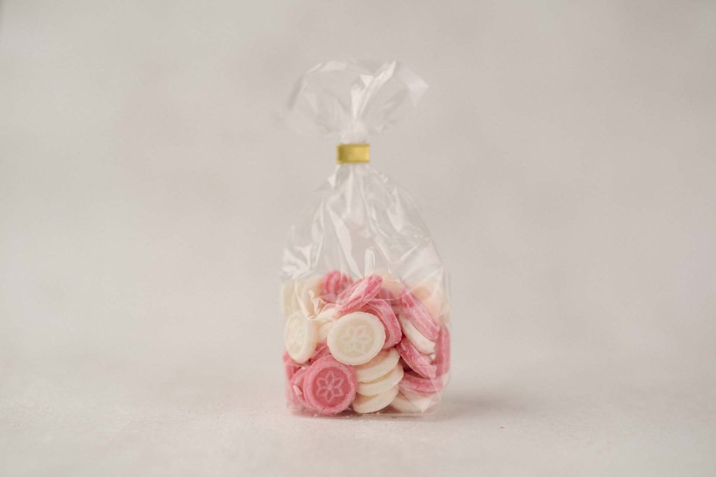 Zucker, Glukose, Natron, Zitronensäure, natürliches Aroma, Farbstoff: echtes Karmin E120.