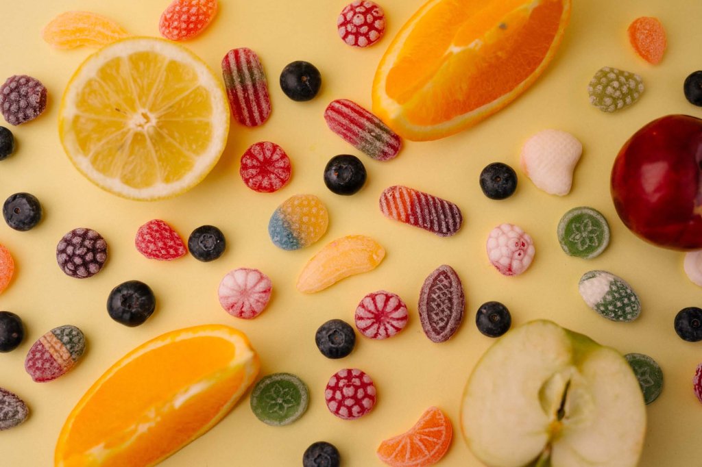 Eine bunte Mischung all unserer leckeren Fruchtbonbons – Vorsicht: lecker!