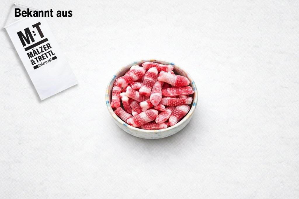 Zucker, Glukose, Weinsteinsäure, Farbstoff: Echtes Karmin E120.