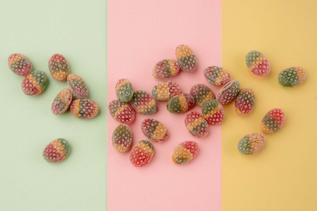 Das saure Rhabarberbonbon wird durch eine feine Karamellnote ergänzt.