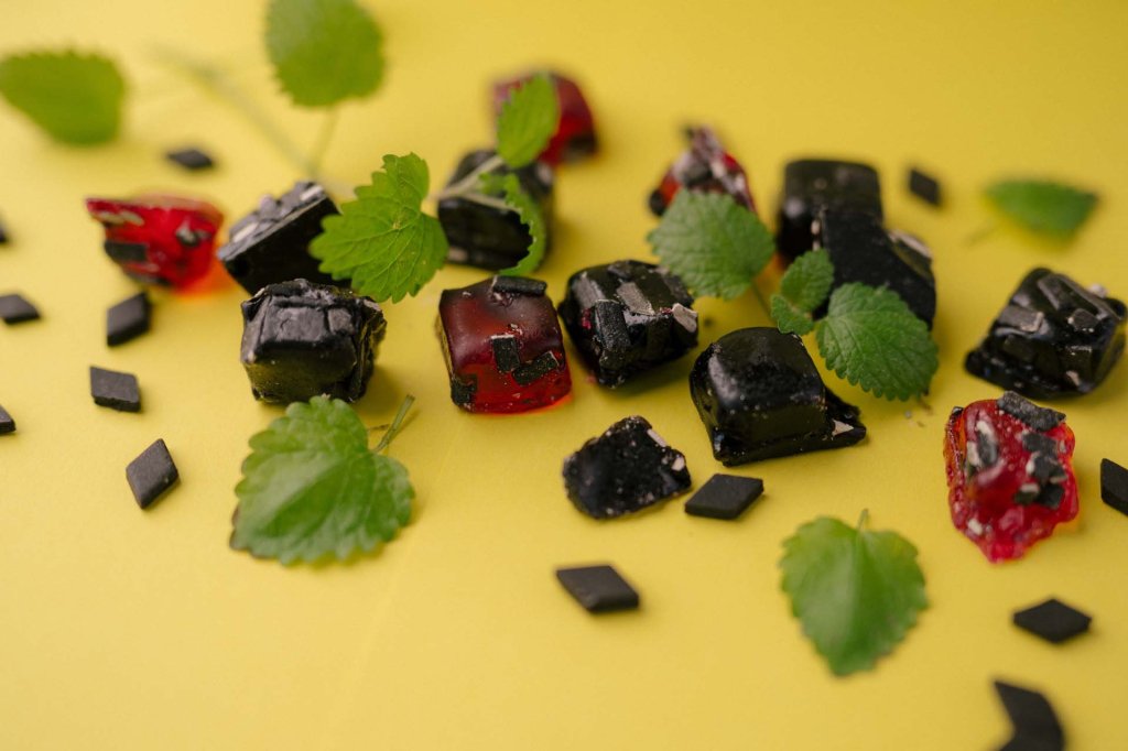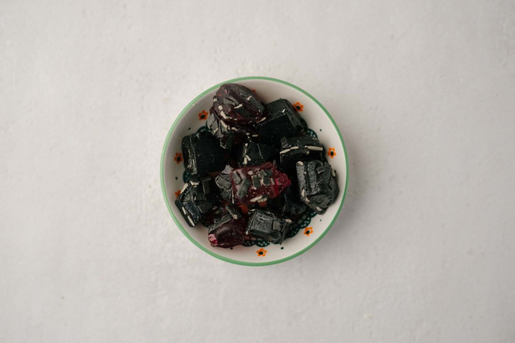 Rot-schwarze Anisbonbons mit Salmiakstreusel.